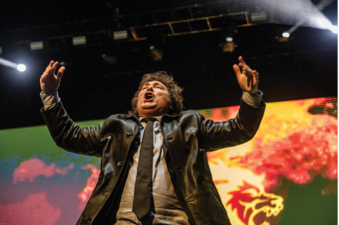 Javier Milei, quant à lui, incarne un autre registre performatif. Lors de ses meetings, il brandit une tronçonneuse, joue du rock, reprend les codes du football et utilise le lion comme symbole personnel. Ces pratiques produisent un discours affectif qui séduit en mêlant provocation, virilité et réinvention d’une culture populaire. Il reconfigure aussi des symboles historiquement progressistes : ses partisans portent un foulard orange avec un lion noir, réplique des foulards verts féministes ou blancs des Mères de la place de Mai. Son projet politique se construit ainsi à travers une polarisation qui vise autant l’« autre extérieur » que l’« autre intérieur », celui qui aurait trahi l’identité nationale.