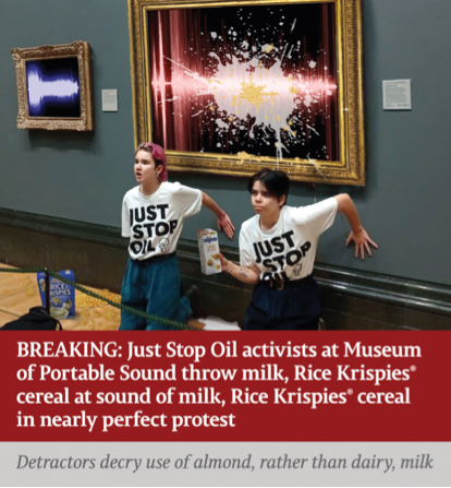 Just Stop Oil mobilise des actions spectaculaires : blocages, jets de peinture, perturbations d’événements culturels. Ces gestes construisent une identité collective marquée par la désobéissance civile, qui dépasse la parole et place l’action corporelle au centre de l’intervention politique. L’État britannique y répond par des lois plus répressives et des peines de prison plus sévères, illustrant ainsi le rôle des institutions dans la configuration du conflit politique, tout en révélant la charge affective que portent ces performances. L’usage de la peinture orange, ou la destruction symbolique d’œuvres d’art comme les Tournesols de Van Gogh, renvoient à un double récit : un monde à sauver, et une humanité coupable. L’antagoniste n’est pas seulement le gouvernement, mais aussi le soi collectif qui a détruit l’environnement.